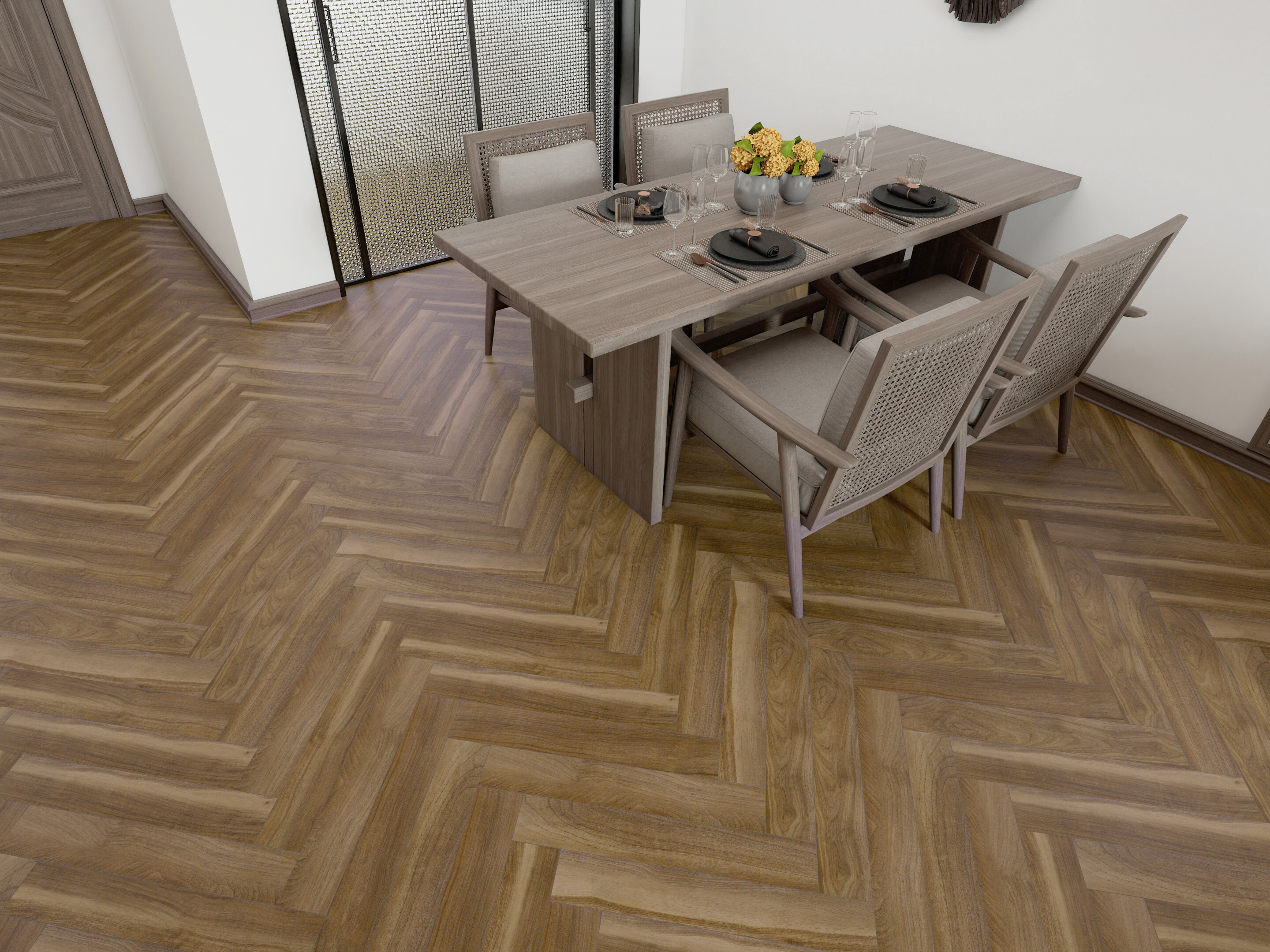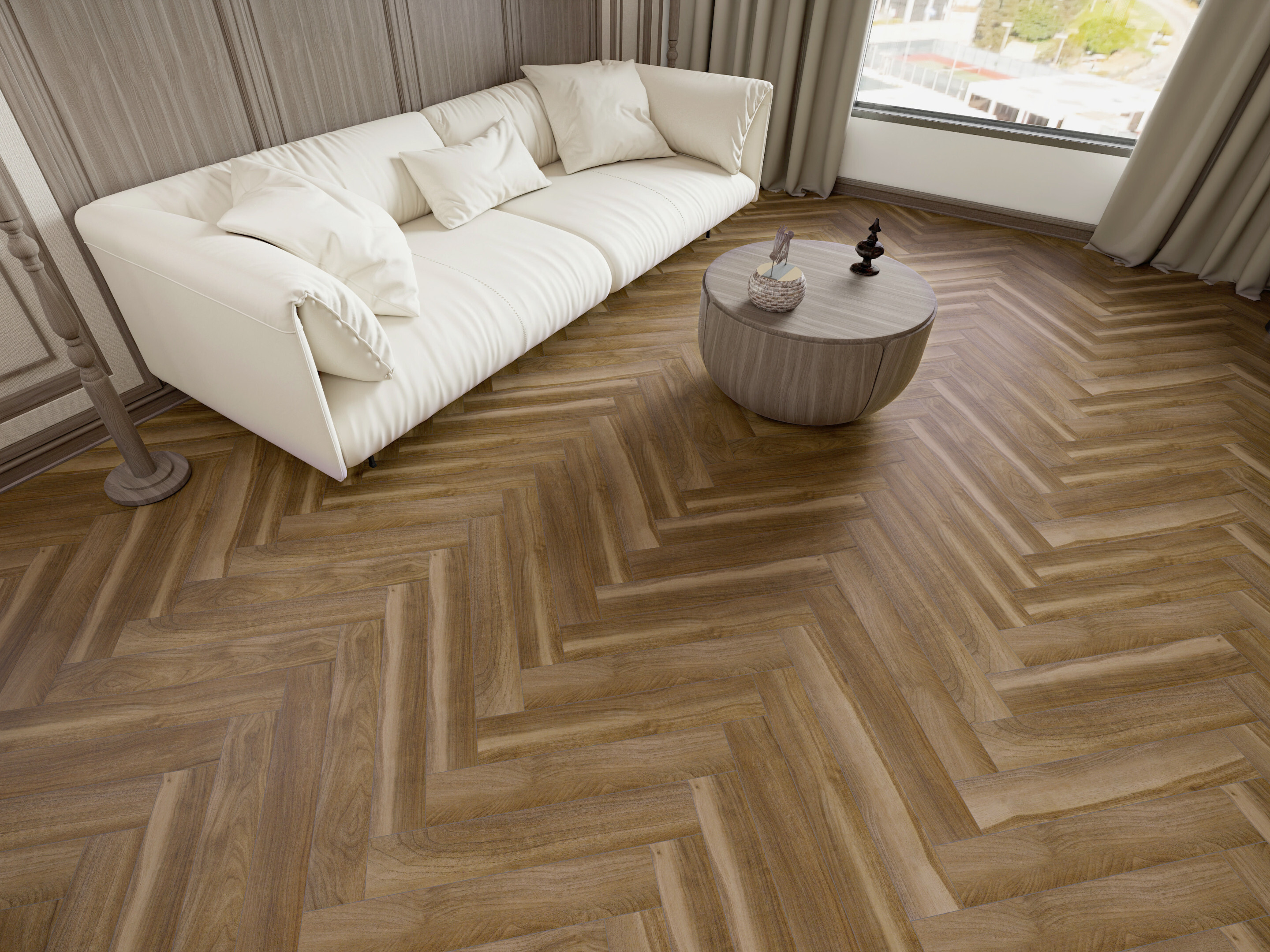 Ламинат ICON Orange выполнен в формате узкой доски и укладывается «ёлочкой». Он прочный, влагостойкий и долговечный, подходит для жилых комнат. Разнообразие оттенков коллекции позволяет создать современный и стильный интерьер.