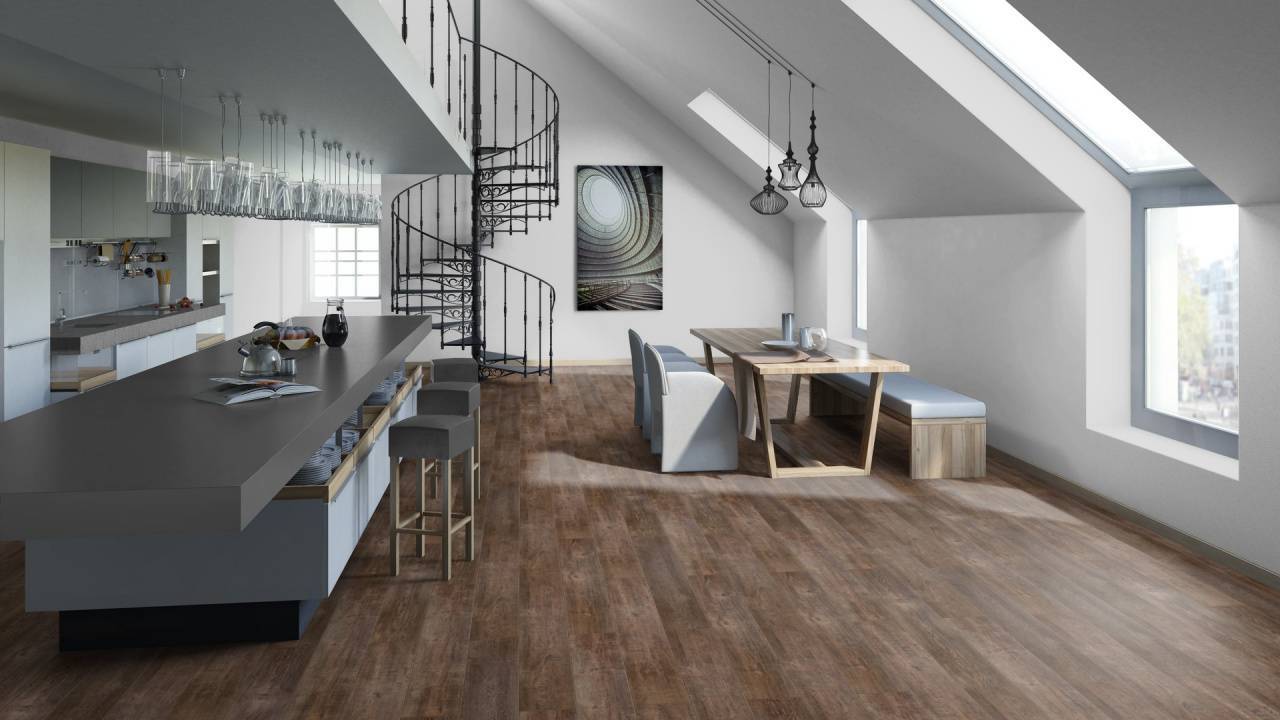 Ламинат Cinema олицетворяет характер и силу классики. Фактура древесины и винтажные мотивы наполняют интерьер стилем.