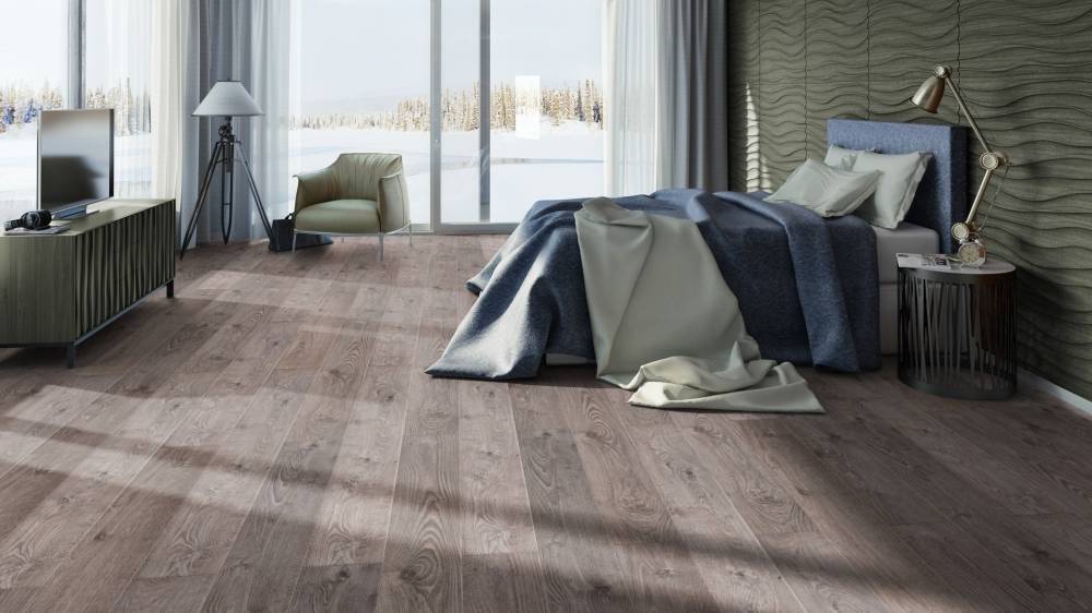 Утончённый и современный ламинат из коллекции Estetica. Элегантный рисунок древесины и спокойные оттенки создают атмосферу уюта.
